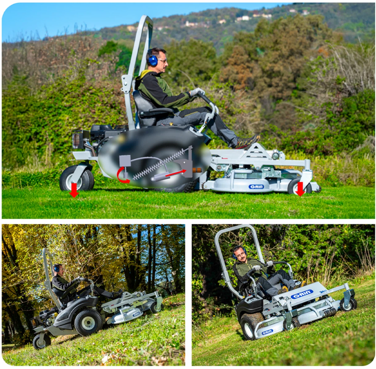Un punto di forza di GRIN ZM è lo stabilizzatore automatico per taglio in pendenza ANTI-LIFT abbinato a una macchina con baricentro molto basso.
