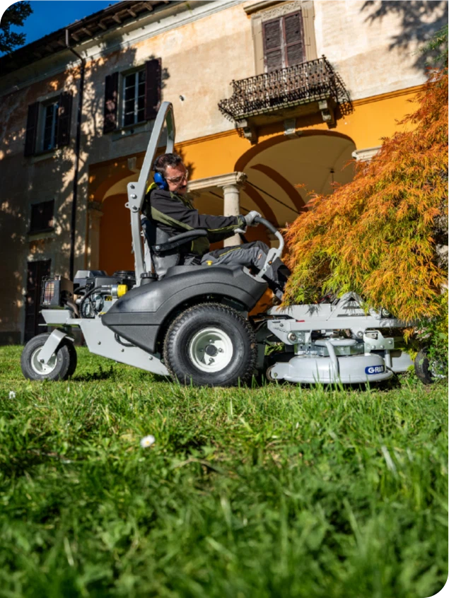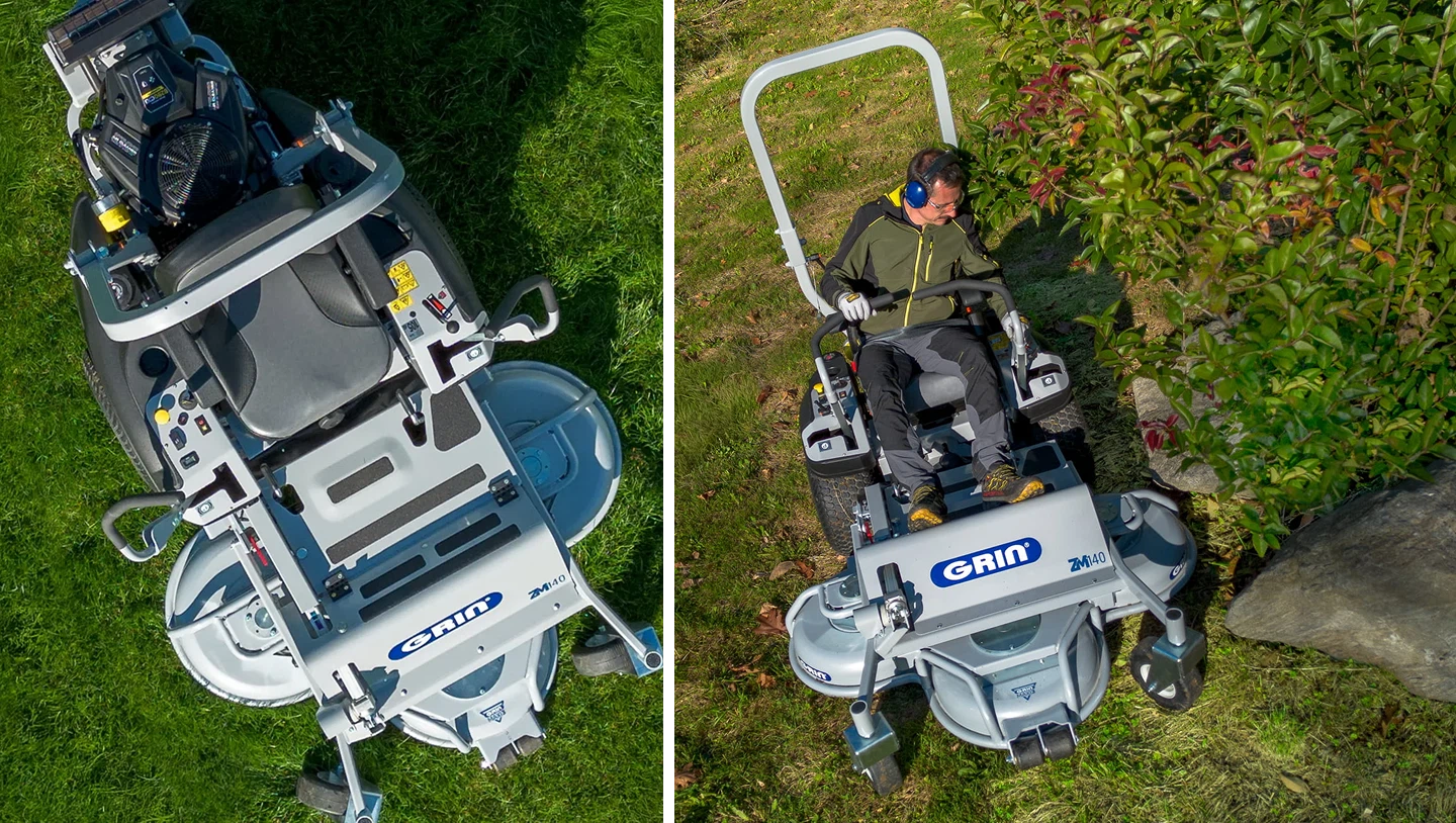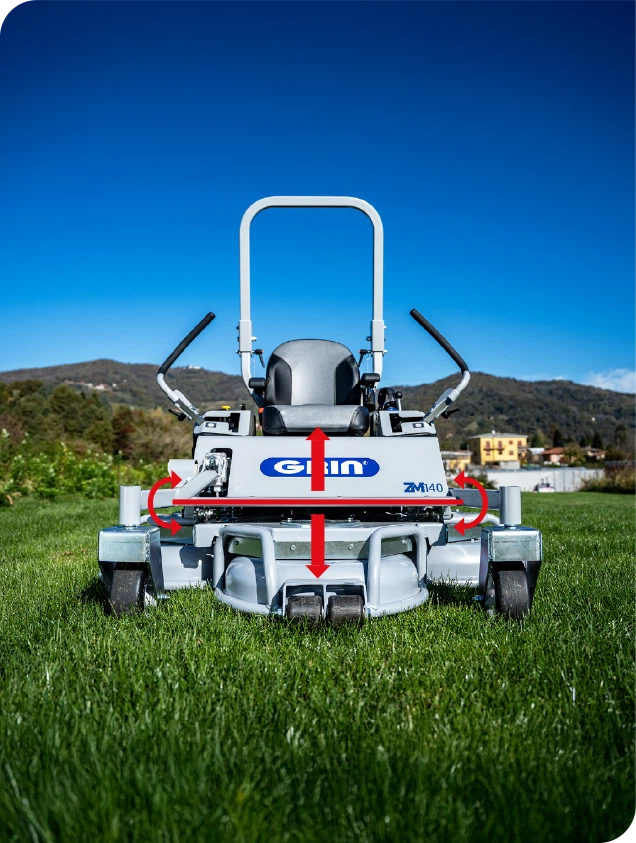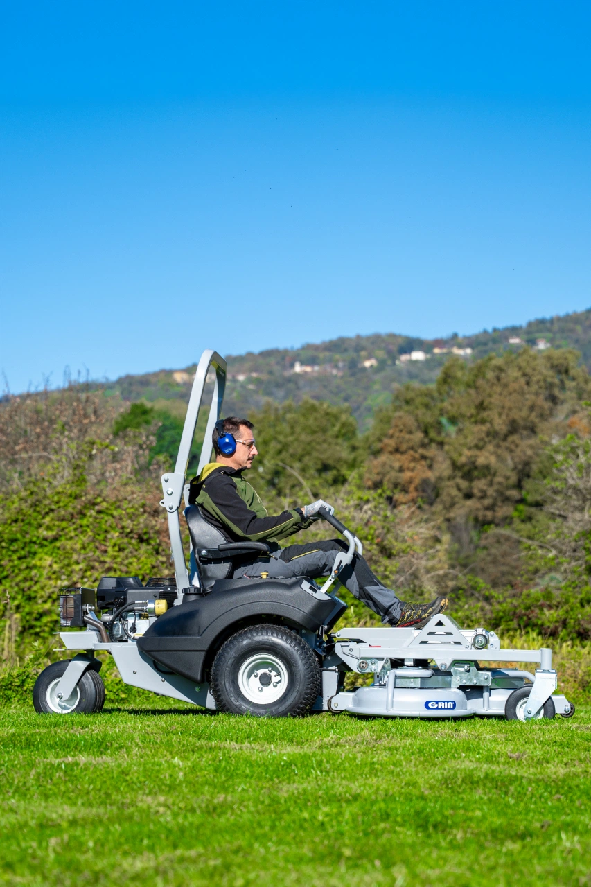 La movimentazione zero turn di GRIN ZM è studiata nei minimi dettagli per garantire manovre rapide senza perdere la qualità nel taglio.