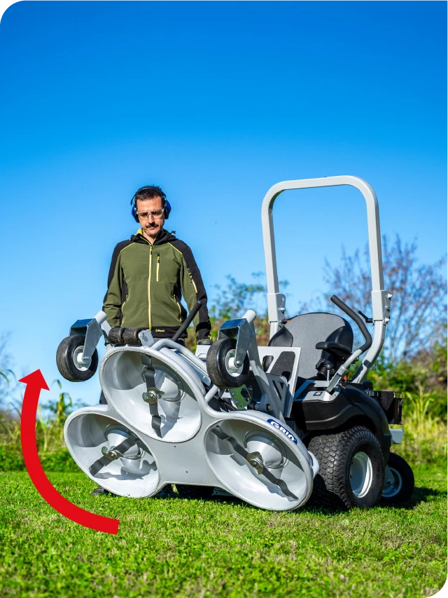 Il Piatto GRIN MAXI 3, montato frontalmente, aumenta la maneggevolezza e regala una incredibile velocità di lavoro. Il piatto di taglio, completamente a sbalzo rispetto alla macchina ed all’operatore: